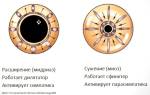 - дилататор зрачка — мышца, расширяющая зрачок, состоит из пигментированных гладких волокон, лежащих радиально в задних слоях радужки, имеет симпатическую иннервацию.
